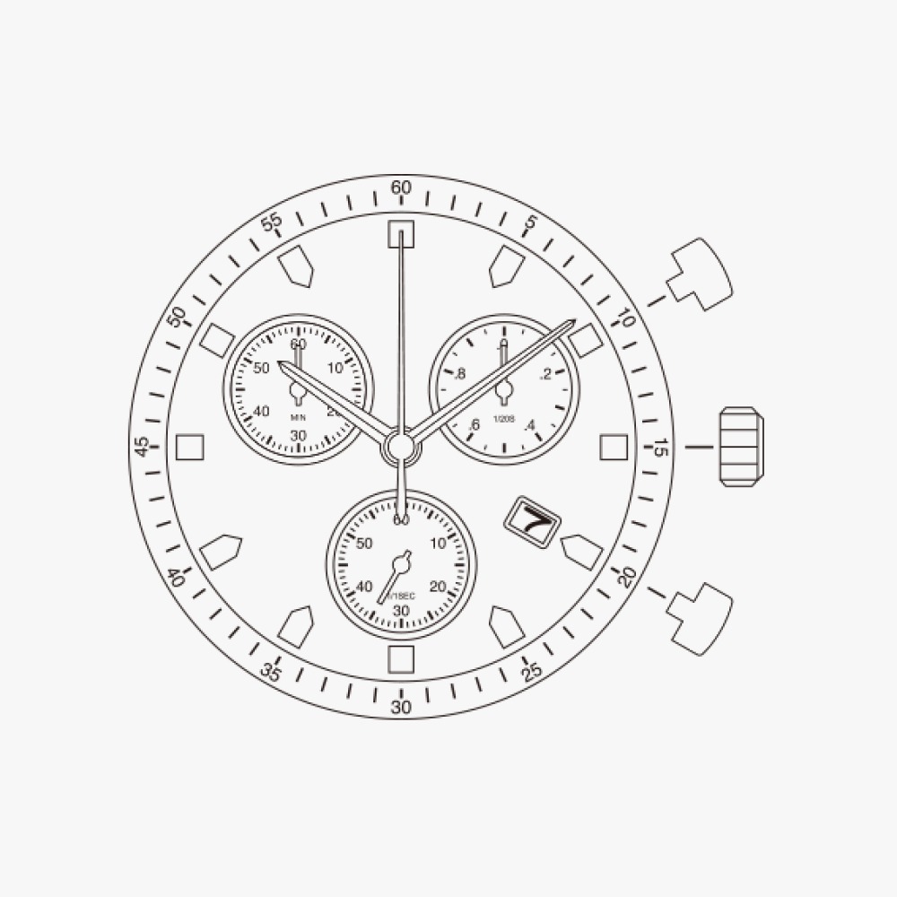 Other Information: Multi-Function movement, 3 Eyes at 6, 9 & 12 o clock position. 60 Seconds marker @ 6, 12 hour marker @ 9, & 60 minute marker @ 12 o’ clock position